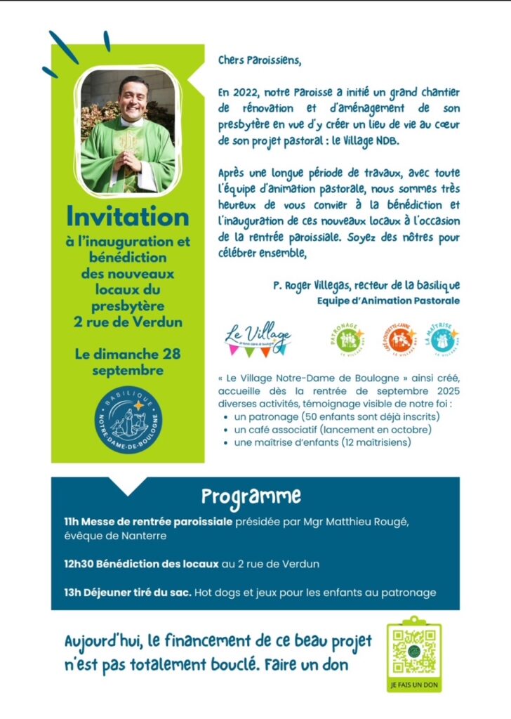 Cette année, notre rentrée paroissiale – occasion de découvrir les équipes et offres proposées par notre paroisse – aura lieu le 28 septembre. Les nouveaux locaux du Village de Notre-Dame de Boulogne seront également inaugurés à cette occasion.